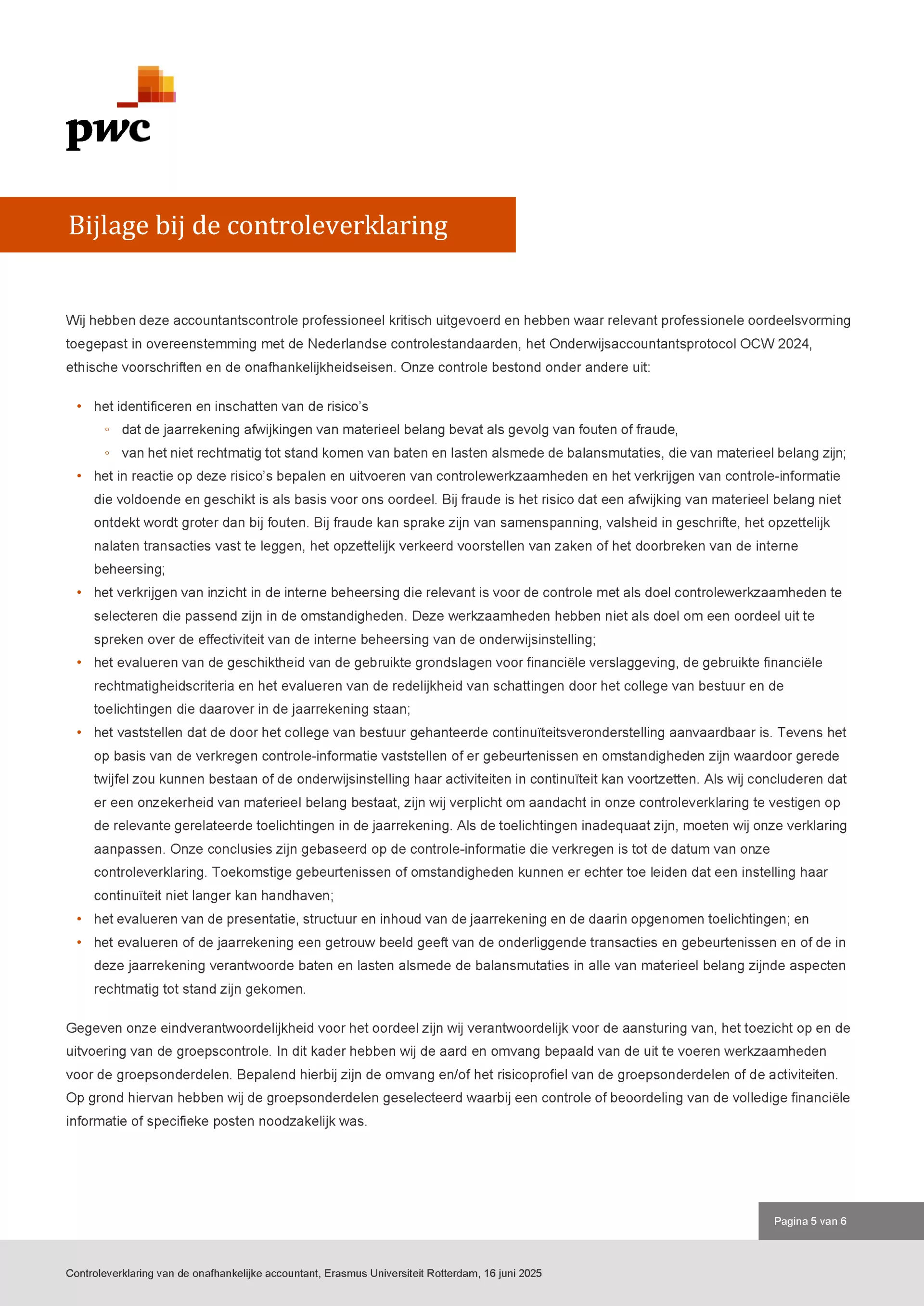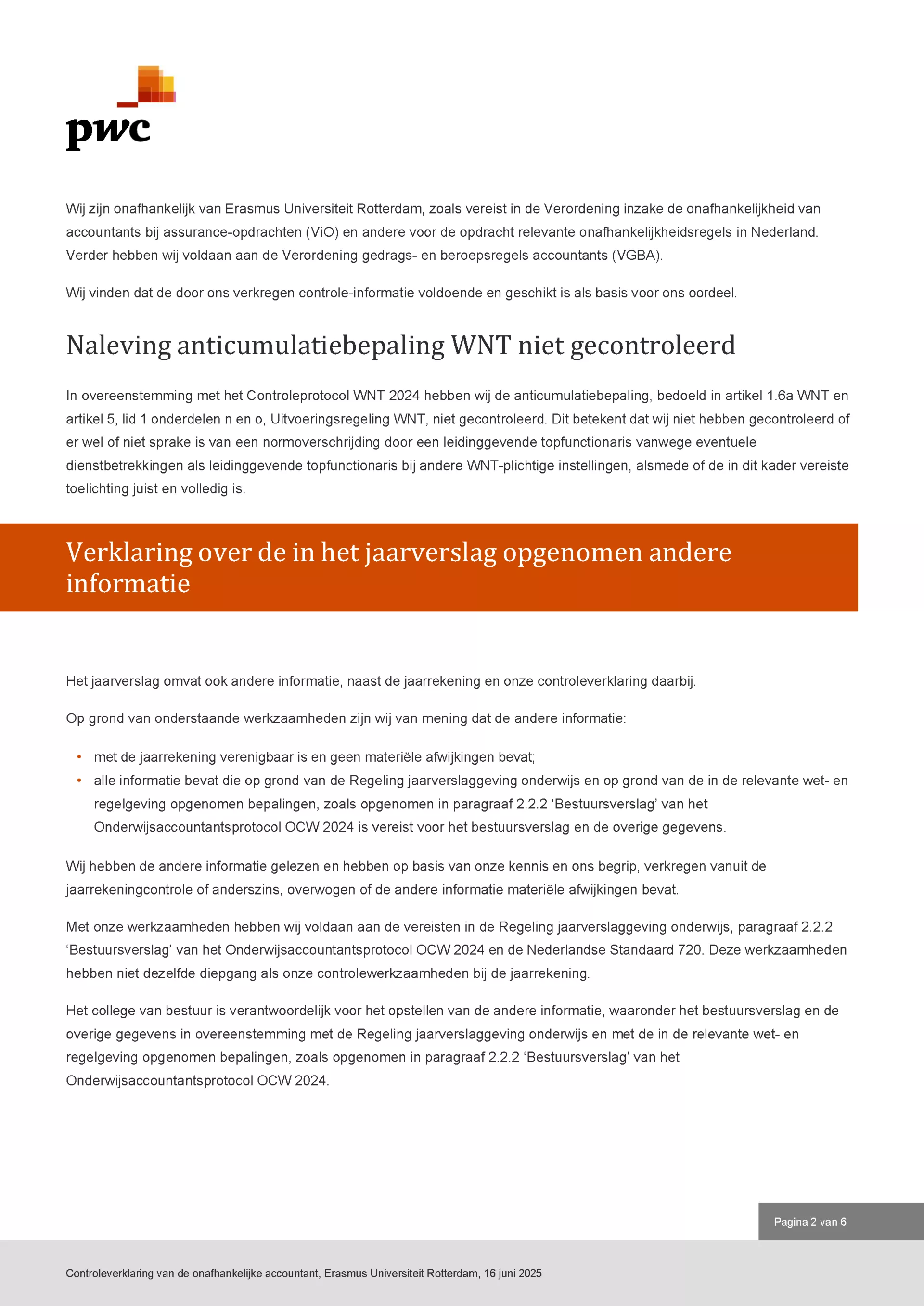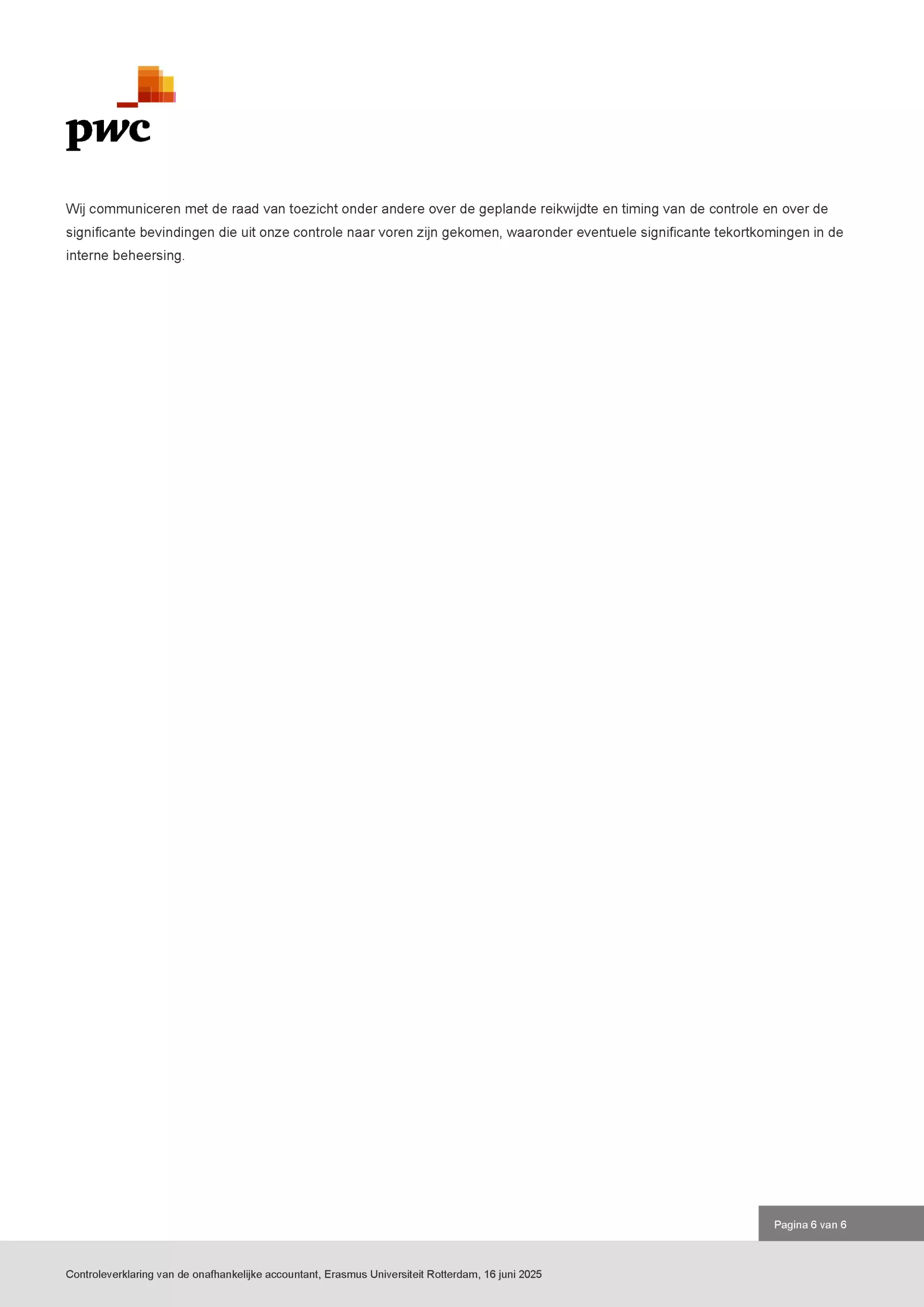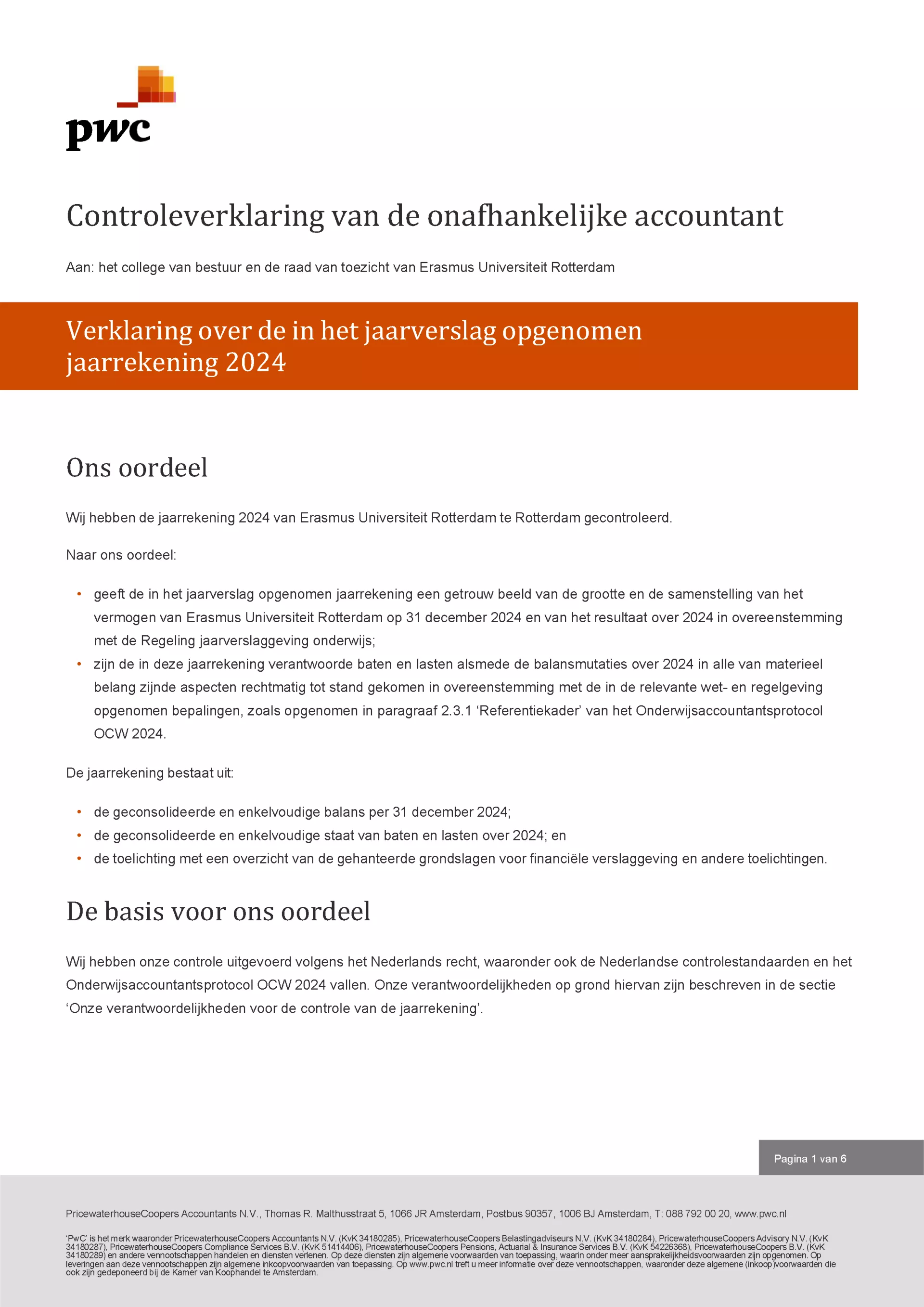 Hieronder volgt de controleverklaring van de onafhankelijke accountant.